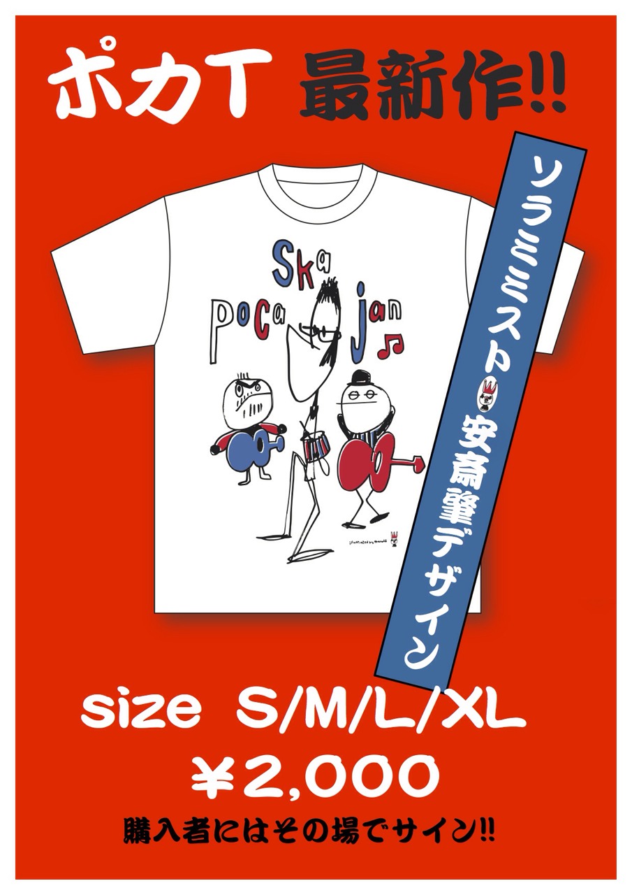 「再結成」から発売しました新しいポカスカジャンTシャツ、現在のツアーでも爆発的人気の商品となっております。ライブ会場では希望のお客様にメンバーがサインもします! ライブにお越しの際は是非お買い求め下さい。