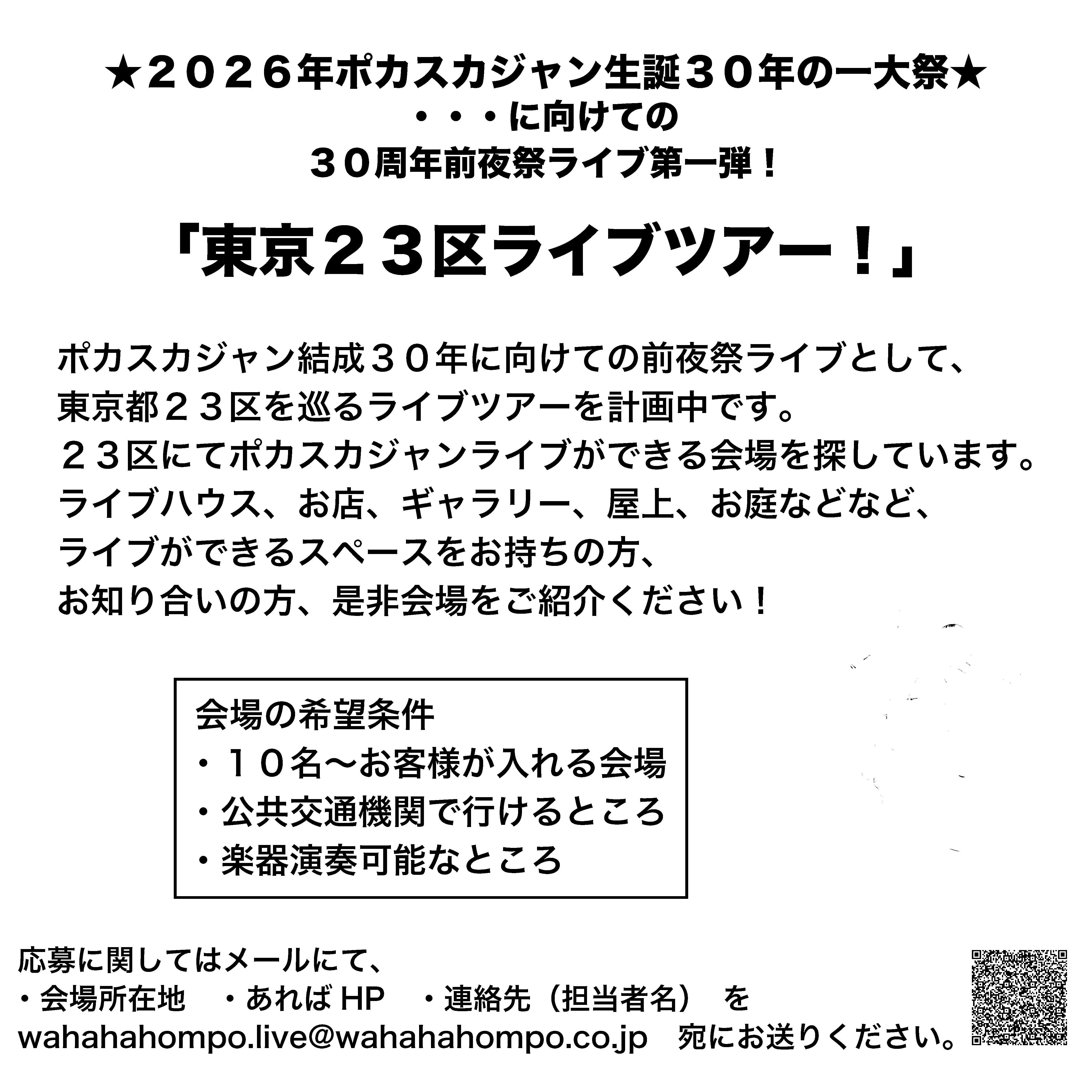 を wahahahompo.live@wahahahompo.co.jp 宛にお送りください。